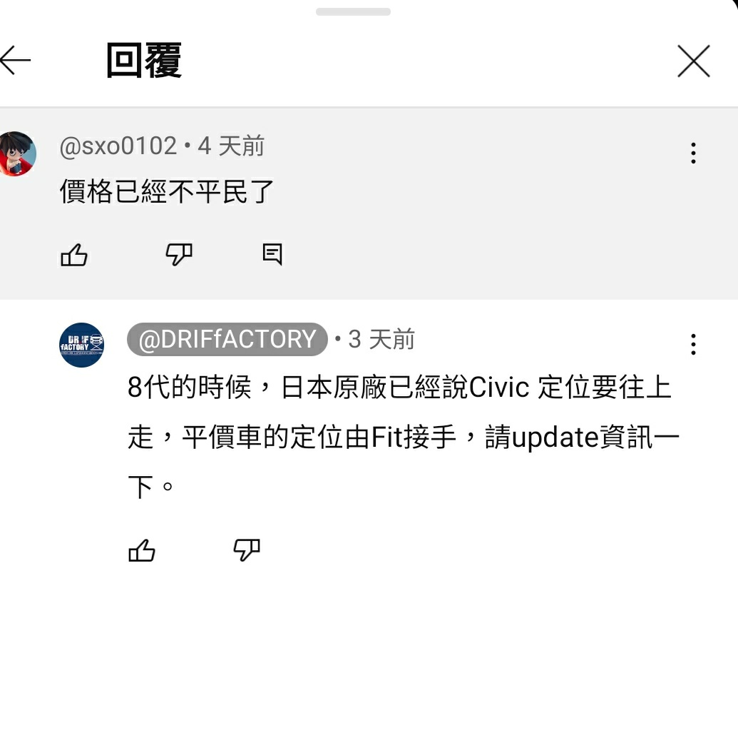 推 ymx3xc : 他就本田粉 開FK8,你不喜歡退訂就好. 07/24 21:53
