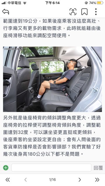推 CCChieh : 座椅前後滑到最後+椅背往後多躺一點就離鐵桿超近,08/16 23:07