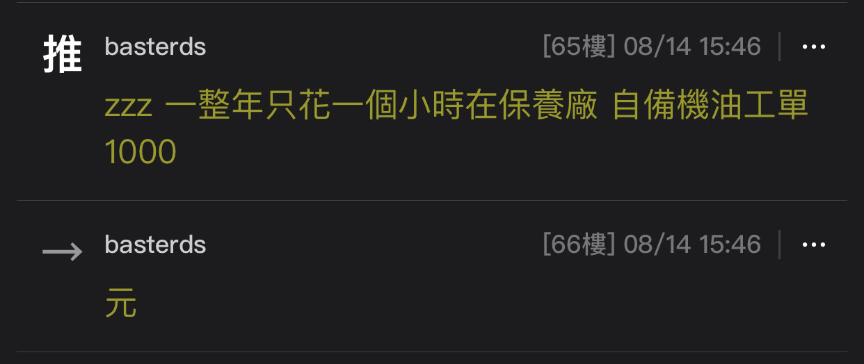 推 LimYoHwan : 車版不是某些人都喜歡保養刪單 只換機油 08/18 12:15
