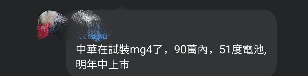 JOHN2188 : 明年上半年就是MG4,不會有ZS EV,別想了 09/22 13:14