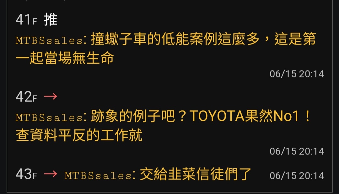 kurumi8896 : 成績令人蠻意外的~但我記得豐田是不是曾經被抓包測 09/28 00:03