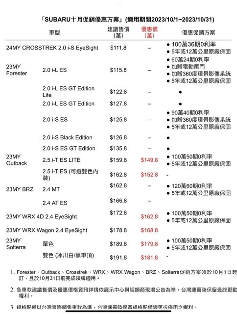 peterpone : WRX車系、Outback也本來就不是賣便宜導向的 10/05 13:04