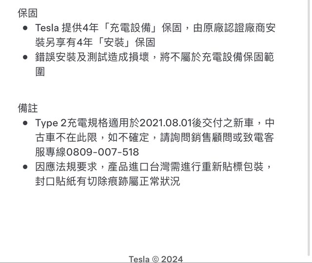 : → lineage20823: Tesla 提供4年「充電設備」保固,由原廠認證廠商安 09/06 13:45
