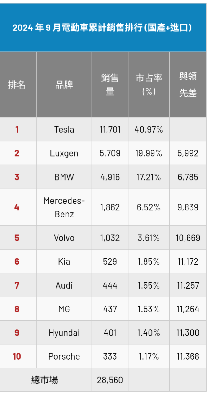 → everfit: 電車今年迄今銷售:特斯拉11701輛,BMW4916輛,賓士1862輛10/10 11:24