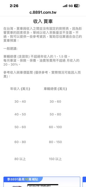 推 cser945: 就以上班族月薪3,4萬來說,年薪買車大概只能找二手 10/26 17:40