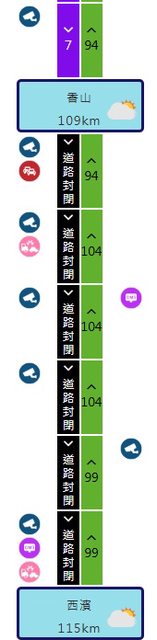 : : 香山交流道至西濱交流道反黑(封閉),似乎有開放逆向下香山交流道。