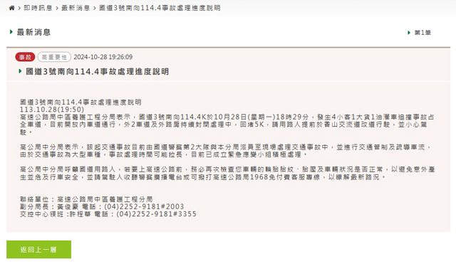 標題Re: [情報] 國3南 114.4K 香山-西濱間重大事故