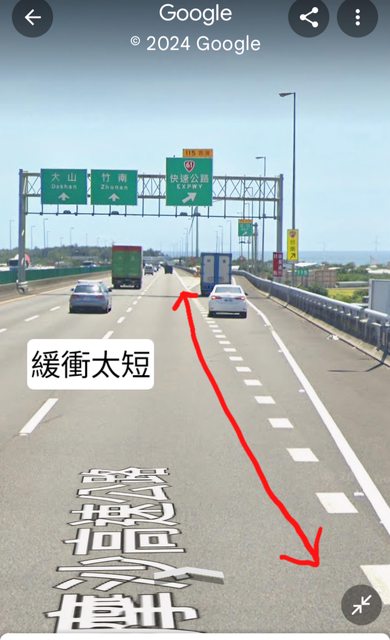 : 這邊緩衝車道只要高公局往香山方向再延伸100-300公尺,就解決這幾個問題。