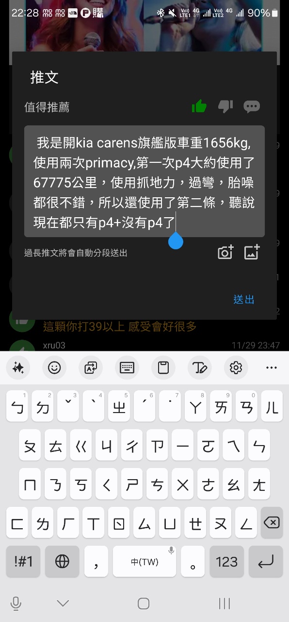 推 smellthecook: 我是開kia carens旗艦版車重1656kg,使用兩次primacy 11/30 22:27