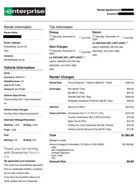 最後找了Enterprise租車,過程體驗都算舒服