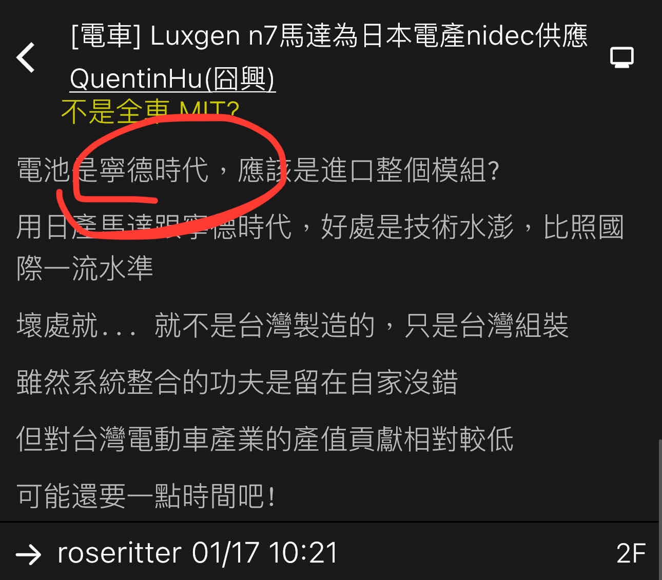 → leoz69927: 爛,那是在說自己一開始用寧德時代是錯的國軒的電池好 12/05 15:04