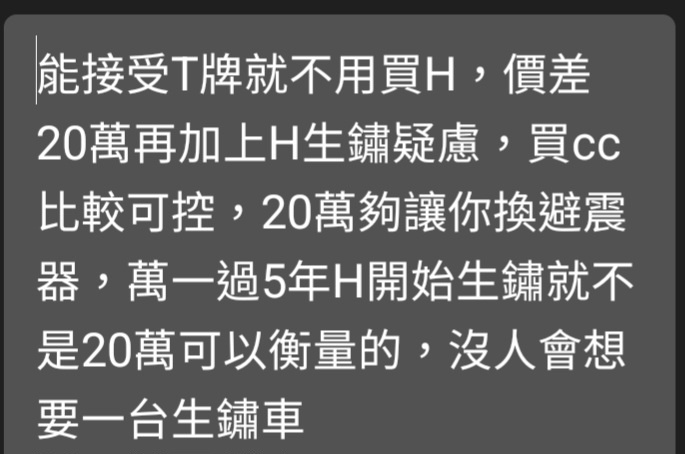 推 finasoul: 考慮價差20-30萬的車,錢已不是主要考量 06/23 07:55