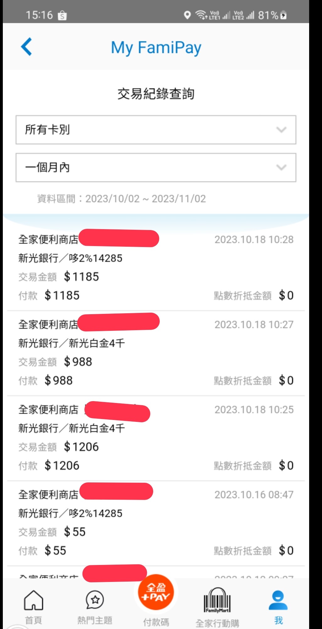 → Sheng98 : 線下交易是指在全家店面交易 or 可用 famipay 的實 11/02 15:15