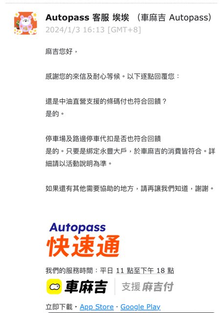 推 red66 : 車麻吉也有很多加盟站適用了 01/09 10:33