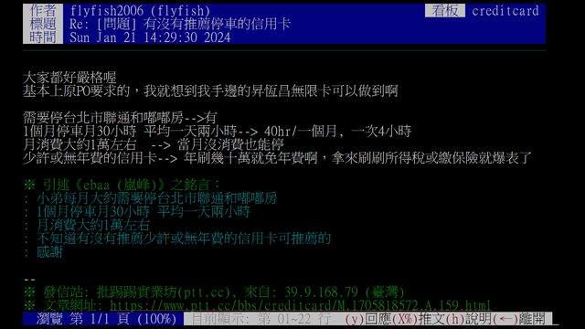 : ※ 文章網址: https://www.ptt-website.tw/creditcard/M.1705818572.A.159