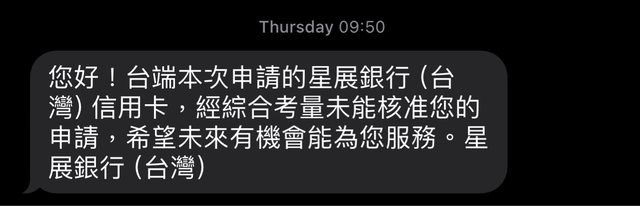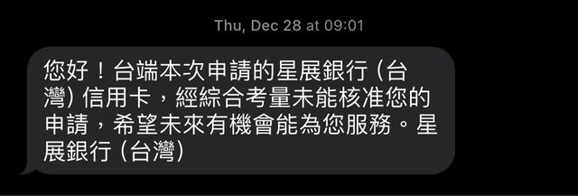去年12月申請過一次,隔天系統直接發簡訊拒核