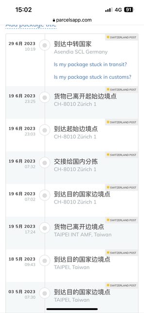 說寄到台灣的包裹都會延遲。