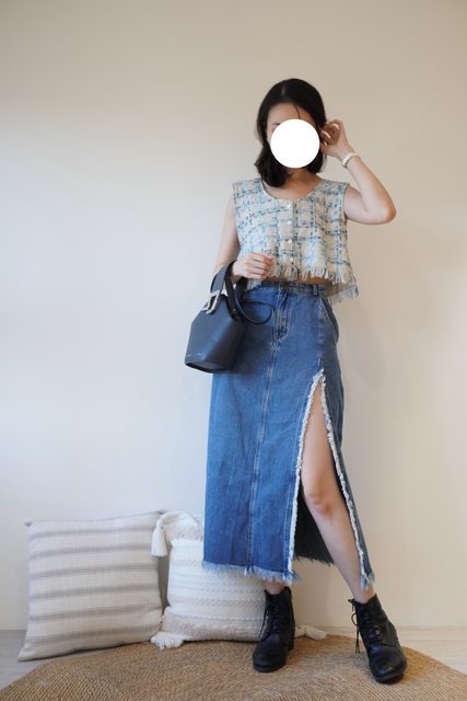 搭配Yourz小香風背心,抽鬚設計呼應起來蠻可愛的