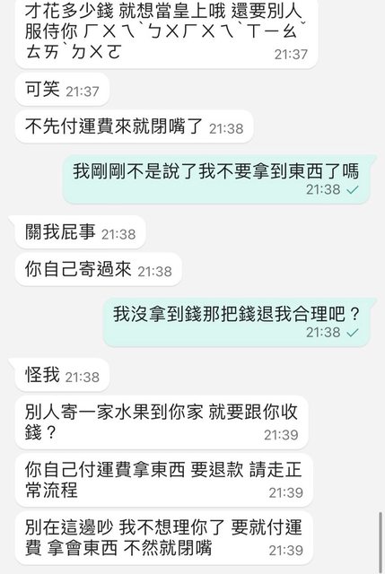 → AHAAA: 就付運費吧,他還要處理這些,其實也造成對 111.255.91.49 05/31 01:32
