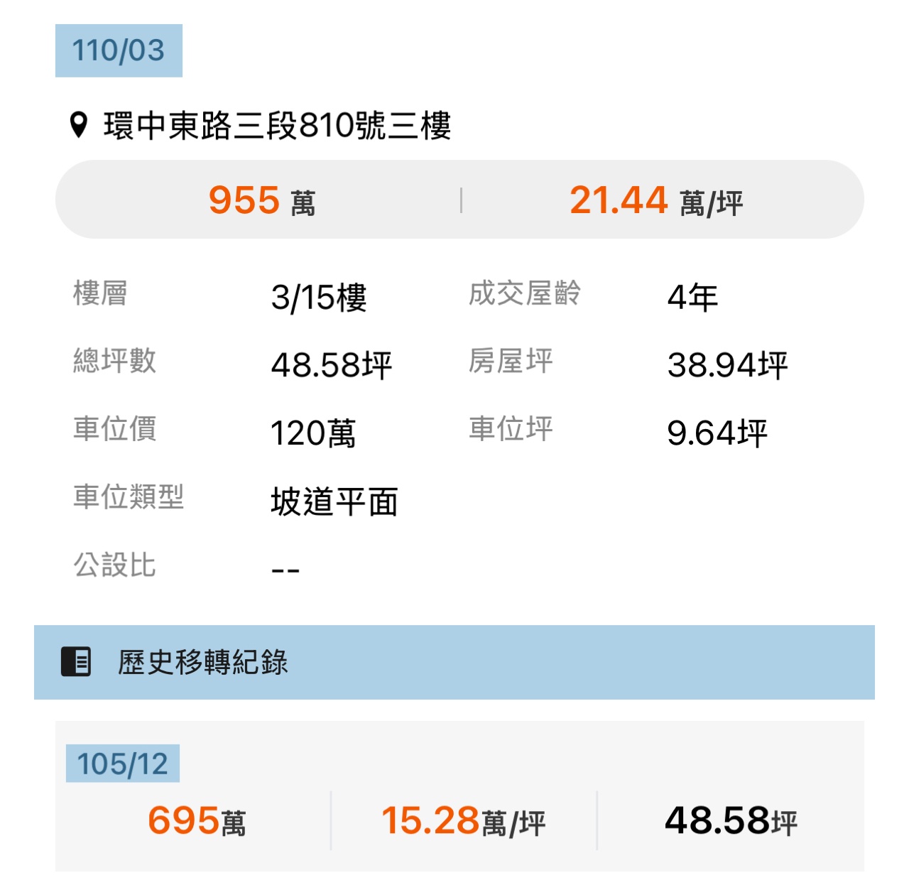 本物件兩年內上一筆實價登錄: 無