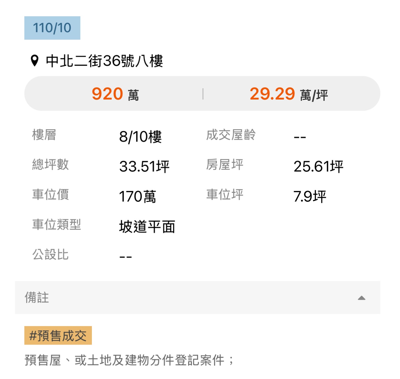 (填整數,預售屋以「零」表示)