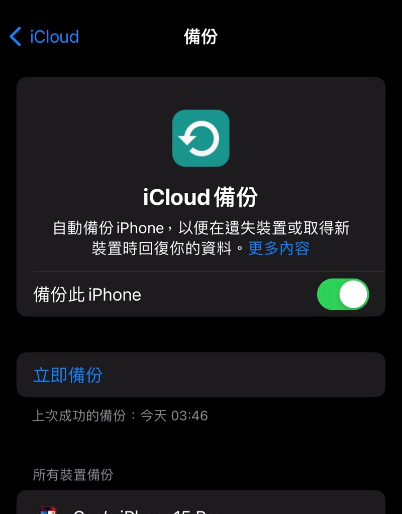 推 A1101166: 你好像關錯地方吧 設定\Apple ID\iCloud\iCloud備份 12/08 10:52