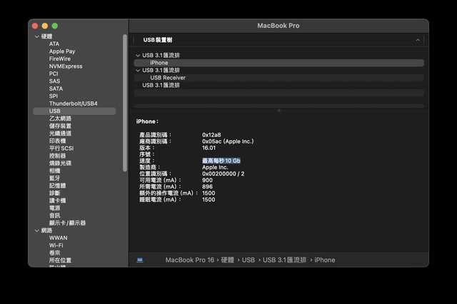 打開系統資訊看也確實只有480Mb/s