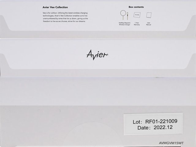 ▼外盒左側面有Avier Vee系列簡介及包裝內容,外盒右側面有商標,外盒下側面有批次/