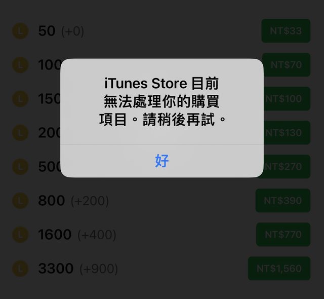 今天在Line上想購買代幣來買貼圖時跳出這個