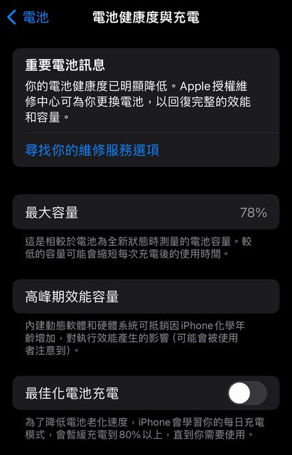 → cylu7878: 我老婆XR健康90也是去年換電池 不知是否主板老化漏電08/03 23:54