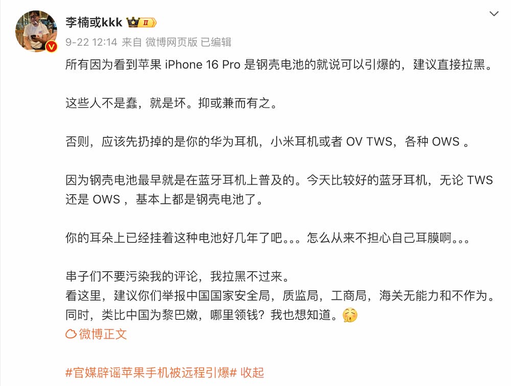 推 frozenmoon: 蘋果闢謠iPhone16電池爆炸 深度解析不銹鋼電池5大優勢 09/24 21:35