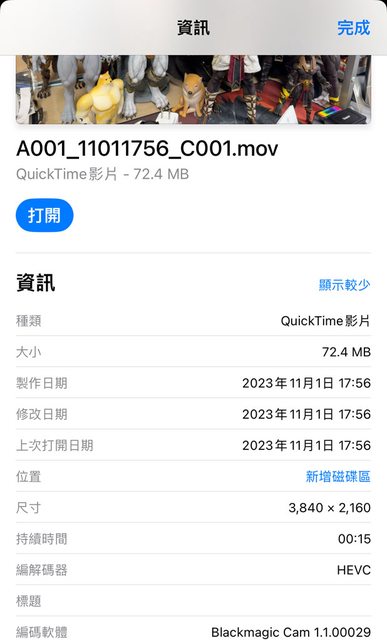 HEVC錄影格式要直接錄到外部儲存,可以使用Blackmagic Camera App,並將Clips儲存路
