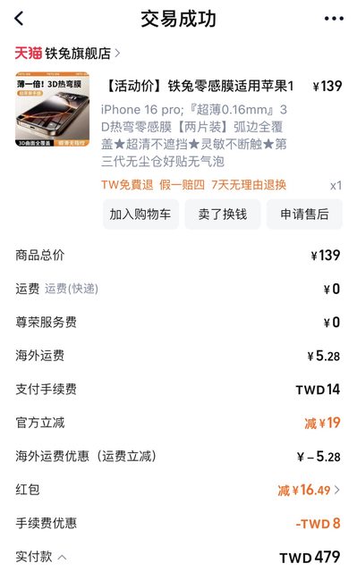 推 clarkhow: 淘寶閃膜無黑邊全透款 很滿意 10/19 15:54