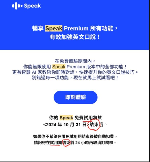 後來在信箱還有發現在廣告信件內SPEAK還有發信提醒