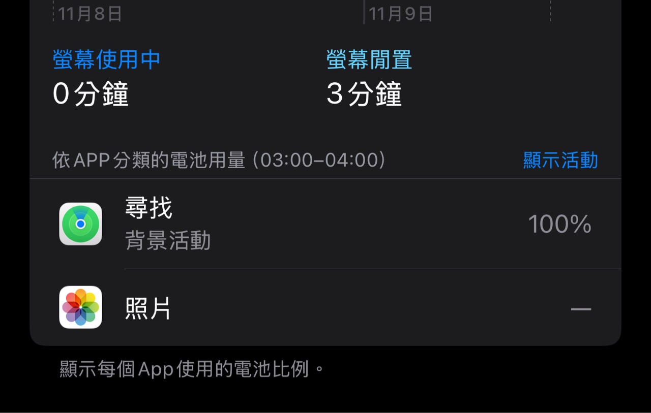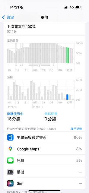 → kpg0427: 消耗率大概是5%,而手機這一個小時內醒了15分鐘,這五%11/08 15:37