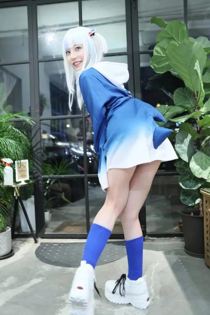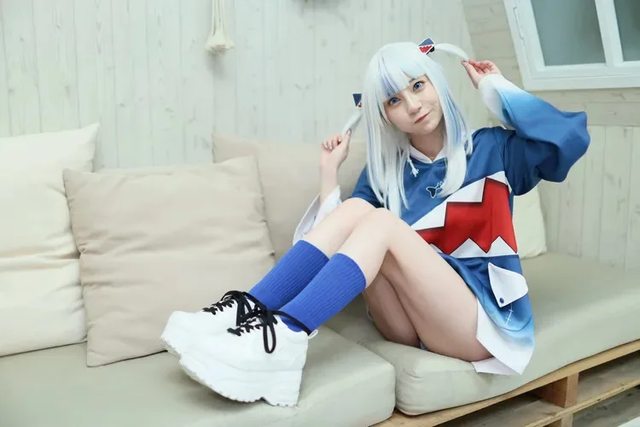 七澤米亞喜歡變裝,來台打扮成虛擬YouTuber噶嗚古拉。鄭孟晃攝