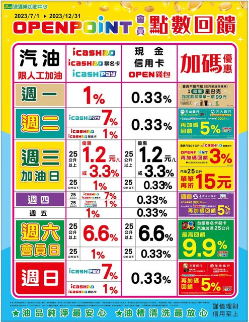 whatslove: 謝謝2223樓,開心卡只能週三去加油 101.137.50.142 06/26 17:59