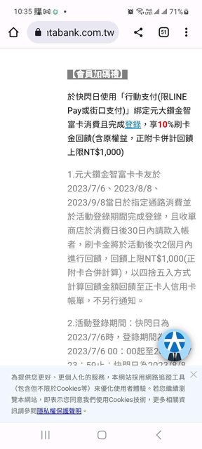 若是線上刷卡還能搭line導購有%%