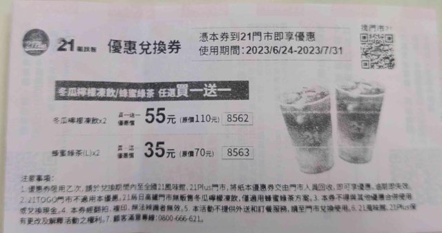 其中,蜂蜜綠茶買1送1,超讚的