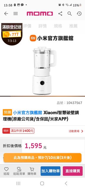 → idxxxx: 在momo用破壁下去搜尋就一堆調理機 也不111.240.32.235 07/07 16:23