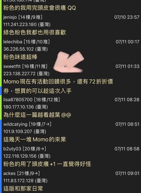 w1219111: 的,我用粉色頭皮調理,落髮變超少!114.25.143.115 07/11 08:51