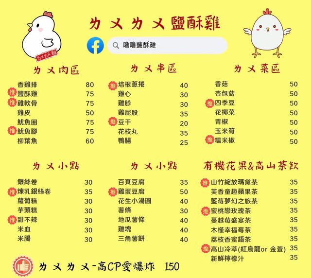 優惠 : 買雞排(80元)送甜不辣 or 米血(30元)