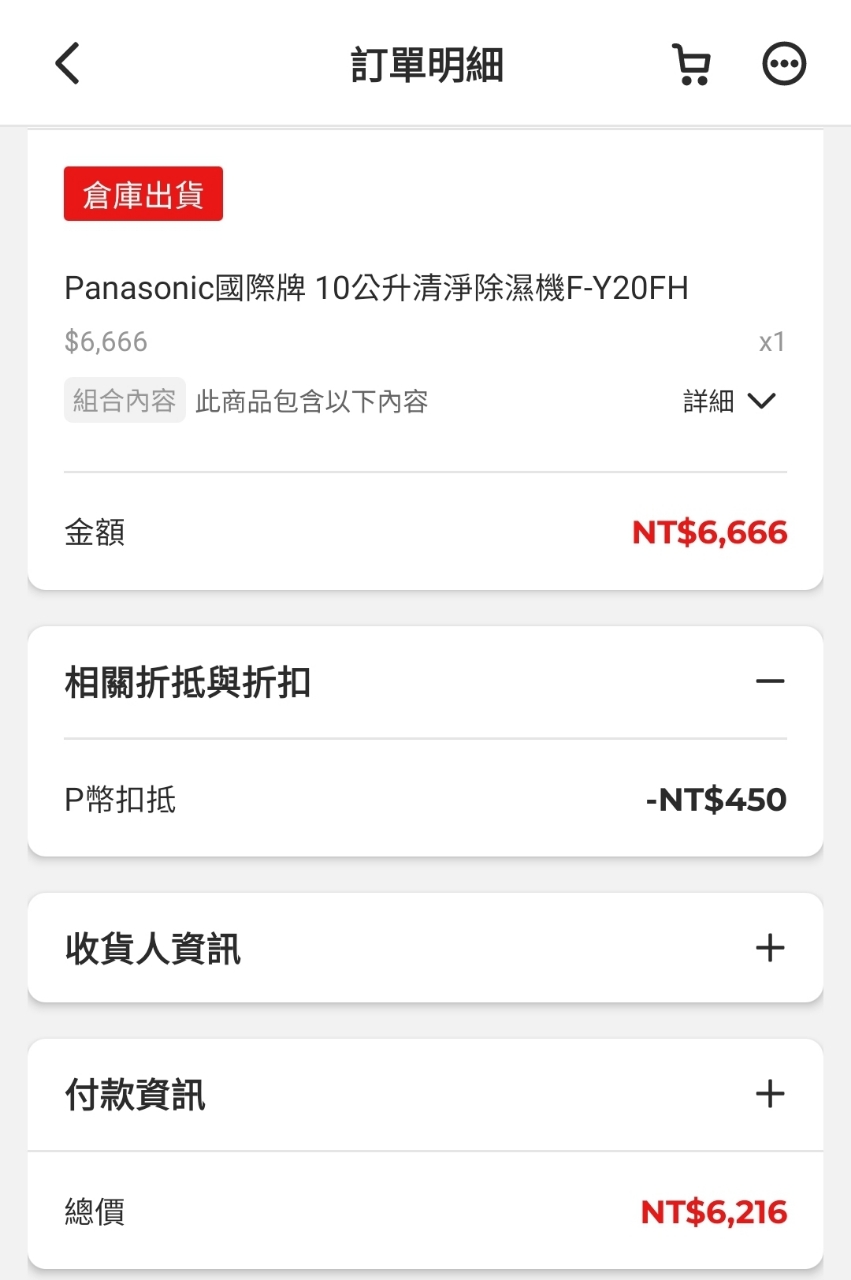 早上逛到批西轟 這台上週才買9999 今天上6666 不知道是否標錯價 Panasonic國際牌 10公升清淨除濕機F-Y20FH https://24h.pchome.com.tw/prod/DMBQ00-1900GJ2W4 供參考 哭哭 -- ※ 發信站: 批踢踢實業坊(www.ptt-website.tw), 來自: 114.136.27.225 (臺灣) ※ 文章網址: https://www.ptt-website.tw/Lifeismoney/M.1690441898.A.4DC