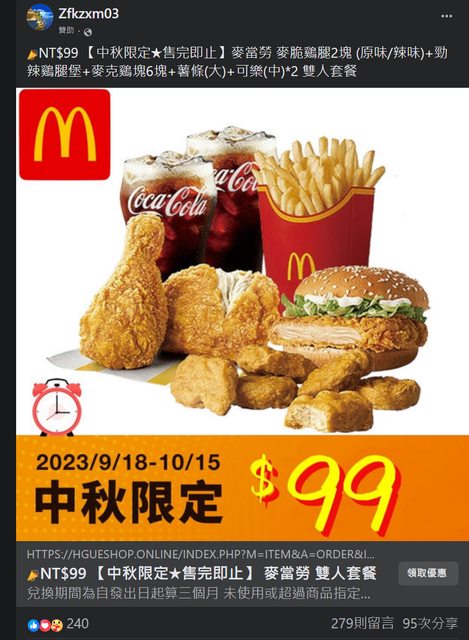 → MK47: 養的優惠 那才是麥當勞 大幅優惠一定是假的 36.235.197.184 09/21 19:30
