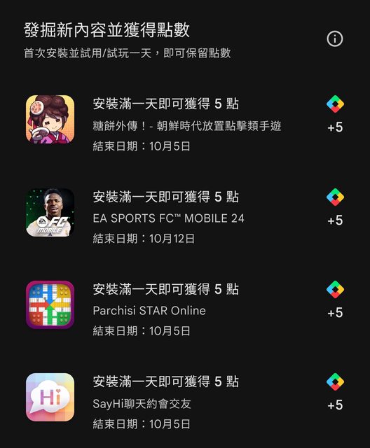 共有四款要下載,下載後就會入點了,但記得要安裝滿1天才可以刪除,不然點數會被收回