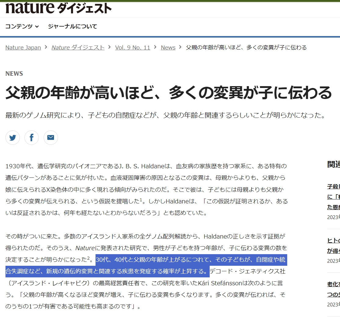 → mosquiton : 40歲以上父親容易造成的孩子遺傳問題 高齡母親反而 11/16 11:16