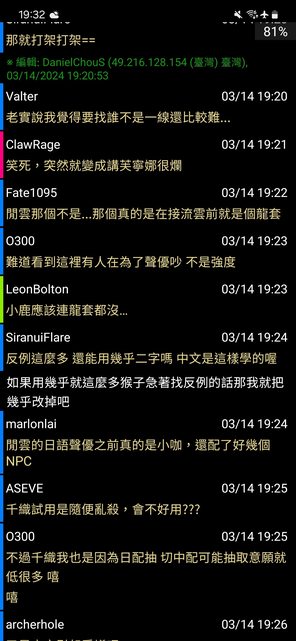 → KBTIT: 我聲優廚 其實有點同意他就是 但討論口氣不是這樣 03/15 00:18