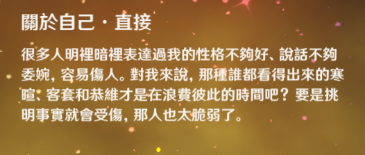 → O300: 看劇情的演出和語音自我形容設定就是講話不委婉直來直往的 04/05 17:05