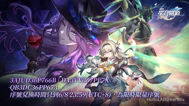 星瓊序號兌換時限到6/8 23:59(UTC+8),記得趕快換喔~~