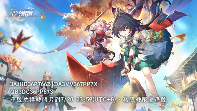 星瓊序號兌換時限到7/20 23:59(UTC+8),記得趕快換喔~~